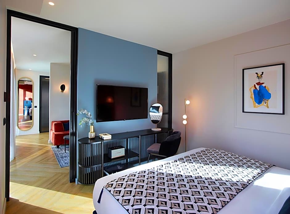 This spacious suite features either a bedroom and a separate living area, or an open space with sleeping and seating area. Each suite features balconies, a work desk and a private bathroom.